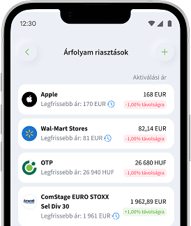 Lehetősége van az OTP SingleMarketen belül árfolyamfigyelőt beállítani, akár tőzsdei értékpapírra, akár az Ön által preferált devizára. A szolgáltatással akkor kaphat értesítést, amikor a termék eléri vagy átlépi a beállított árszintet.